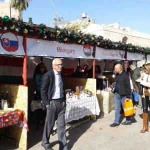 As in the previous years, Hungary participated in the Bethlehem Christmas Charity Fair on 27 November. Kalocsa, the twin city of Bethlehem and Kecskemét offered donations for the fair, sold by our Honorary Consul and his family on the main square of the city. The income of the fair was offered to local children in need.